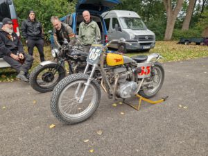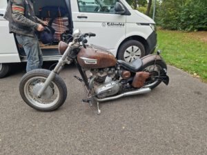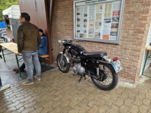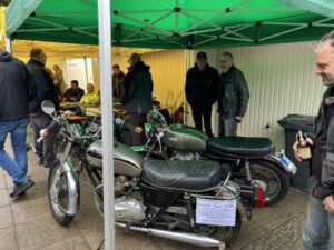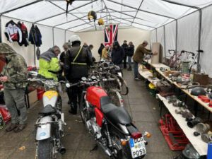 Nu‘ isses Freitag abend und es ist alles (halbwegs) fertig. Jörg von Single&Twins hat aufgebaut. Björn und Anette von B.O.M.B. Illustrations ebenfalls, Mike von Mikes Motorrafgarage hat sich in der Scheune ausbreiten können…..GEHT DOCH