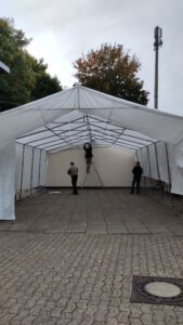 Freitag morgen….die Scheune sieht aus wie Sau. Es ist noch Betrieb auf’m Hof, also steht da noch die Hüpfburg. Der erste Raum ist frei, immerhin. Im zweiten ist ein Kindergeburtstag gebucht. Es kommen die ersten Aussteller…Keiner kann was tun da noch alles voll ist. FUCK